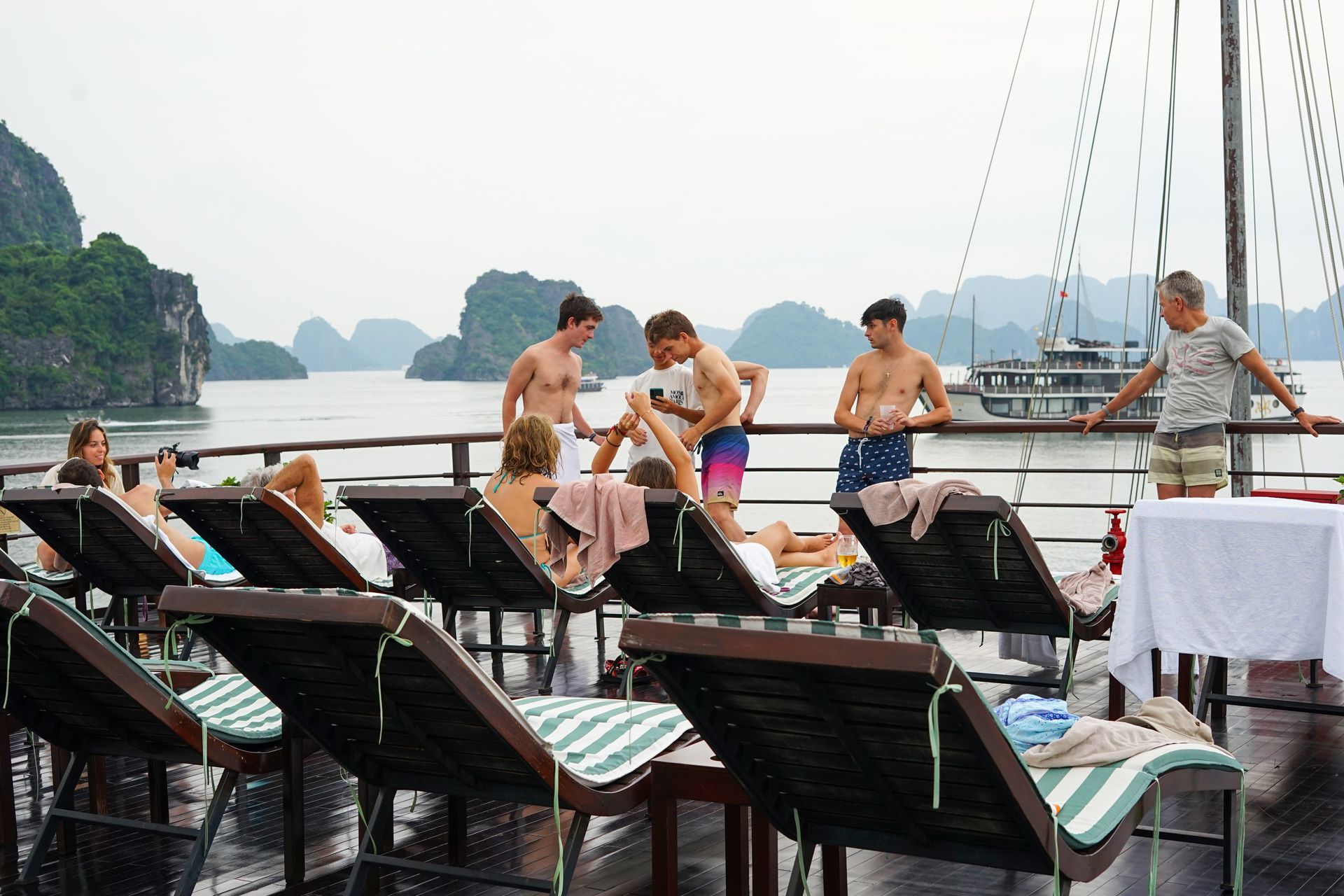 A bordo non mancheranno momenti di convivialità, feste serali sotto le stelle e numerose attività facoltative come kayak, canottaggio, dimostrazioni di cucina vietnamita e altre esperienze pensate per vivere la baia in modo attivo o semplicemente rilassato.
